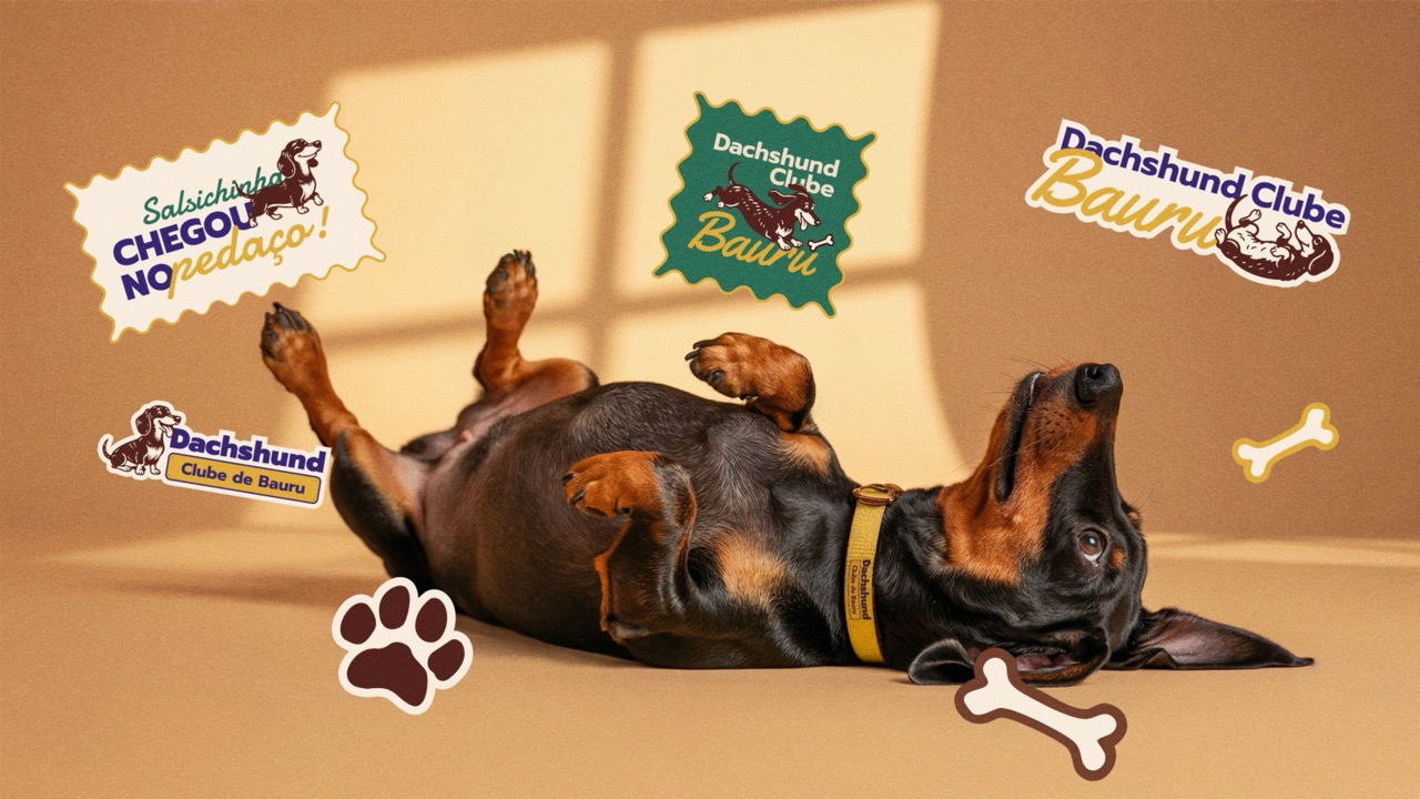 Um clube de Dachshunds da cidade de Bauru sentiu a necessidade de desenvolver uma marca versátil, capaz de acompanhar diferentes frentes do projeto — desde a criação de produtos autorais até a organização de encontros entre os membros e a produção de conteúdo para as redes sociais.