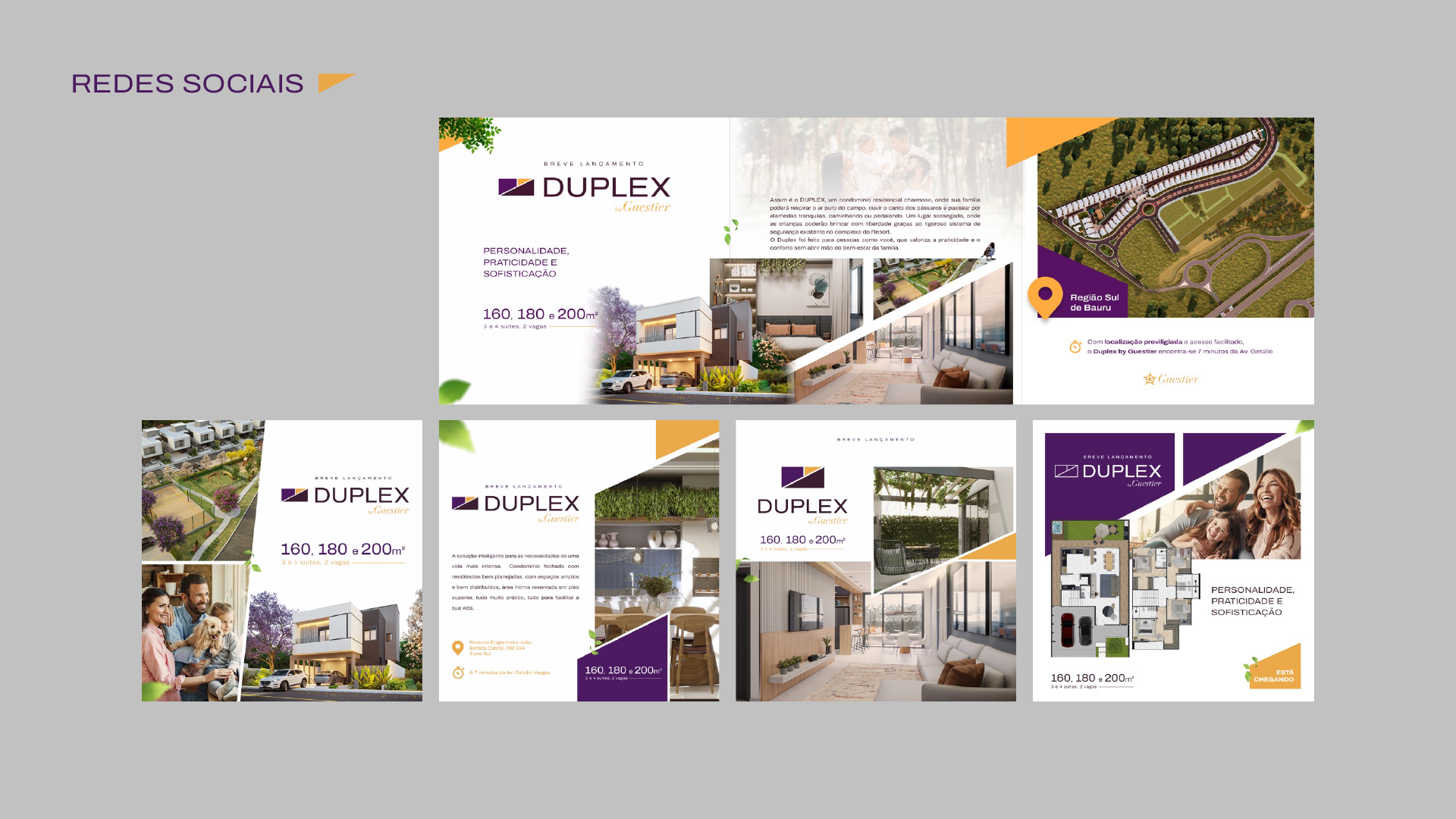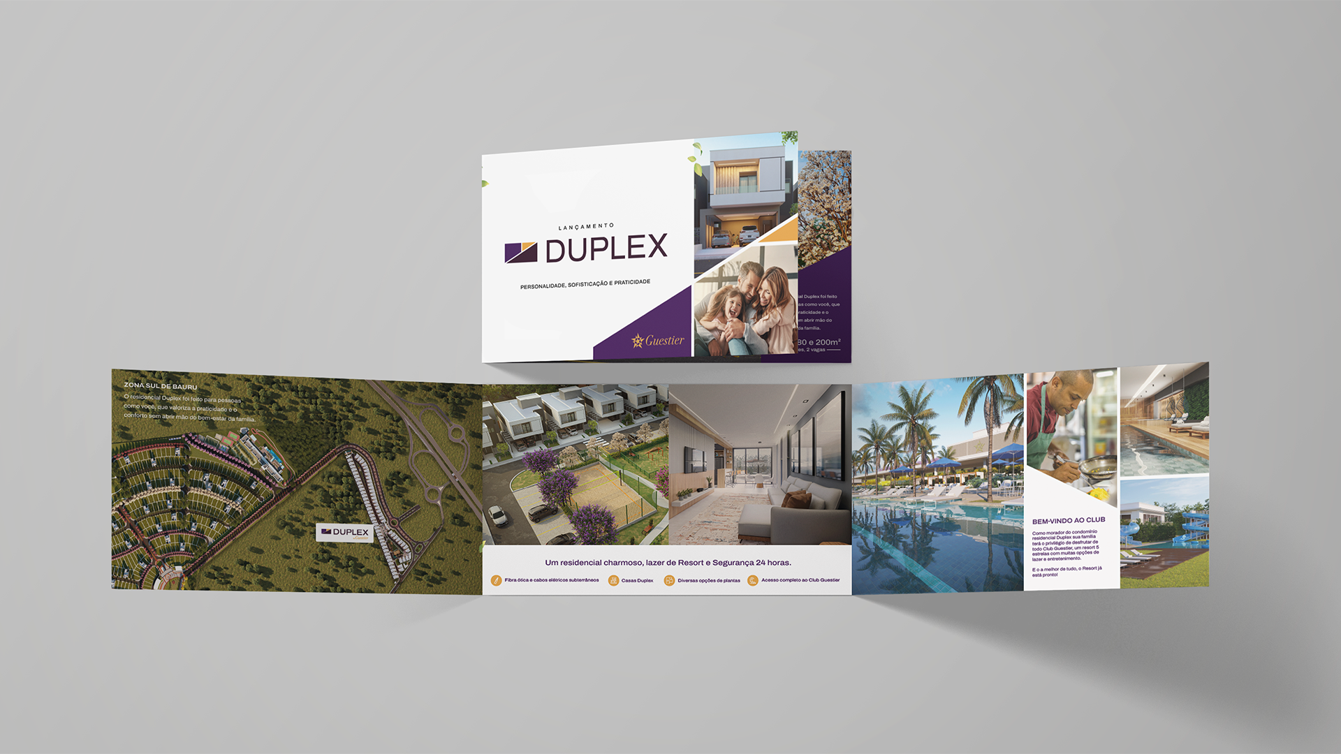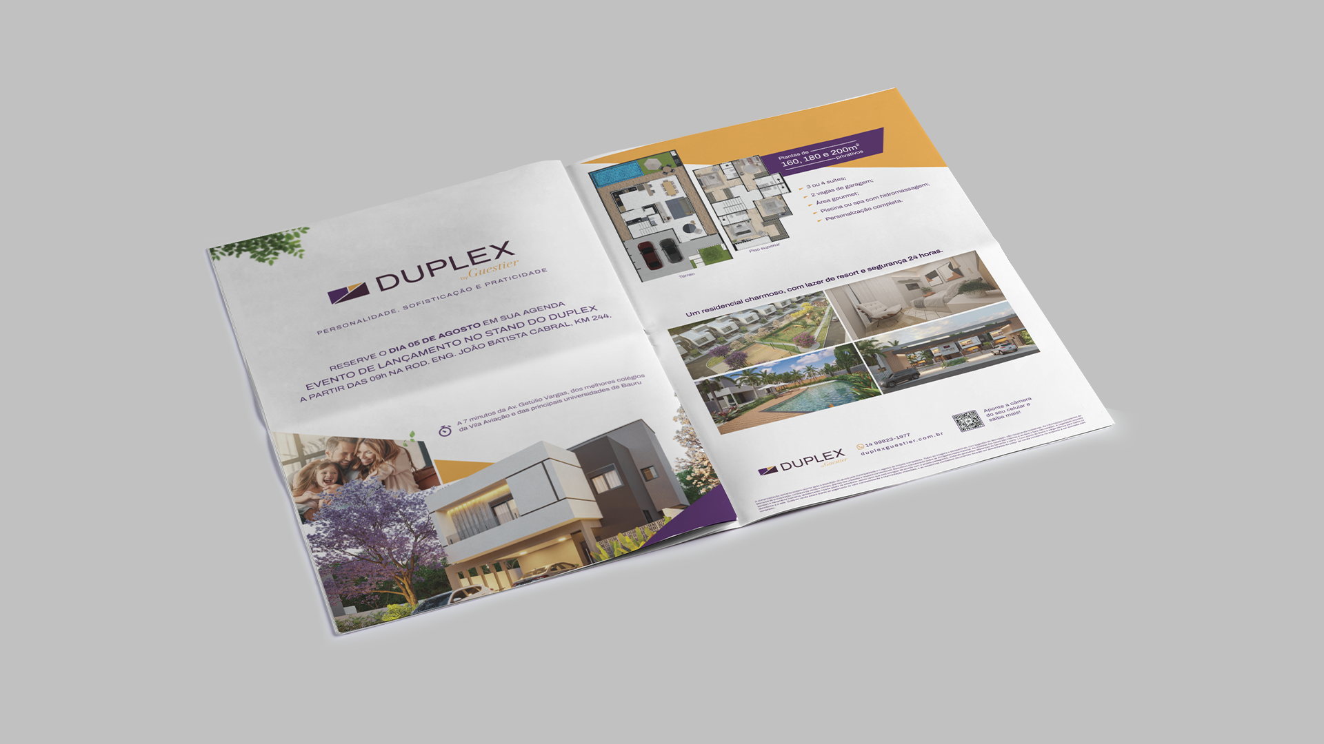 Este condomínio fechado foi cuidadosamente pensado para a vida moderna, com plantas amplas, uma suíte privativa no piso superior e foco em funcionalidade e conforto. Mas o projeto foi muito além do planejamento arquitetônico. Ele se estendeu por vários meses e envolveu desde materiais impressos até campanhas publicitárias completas, incluindo um comercial exibido na televisão.