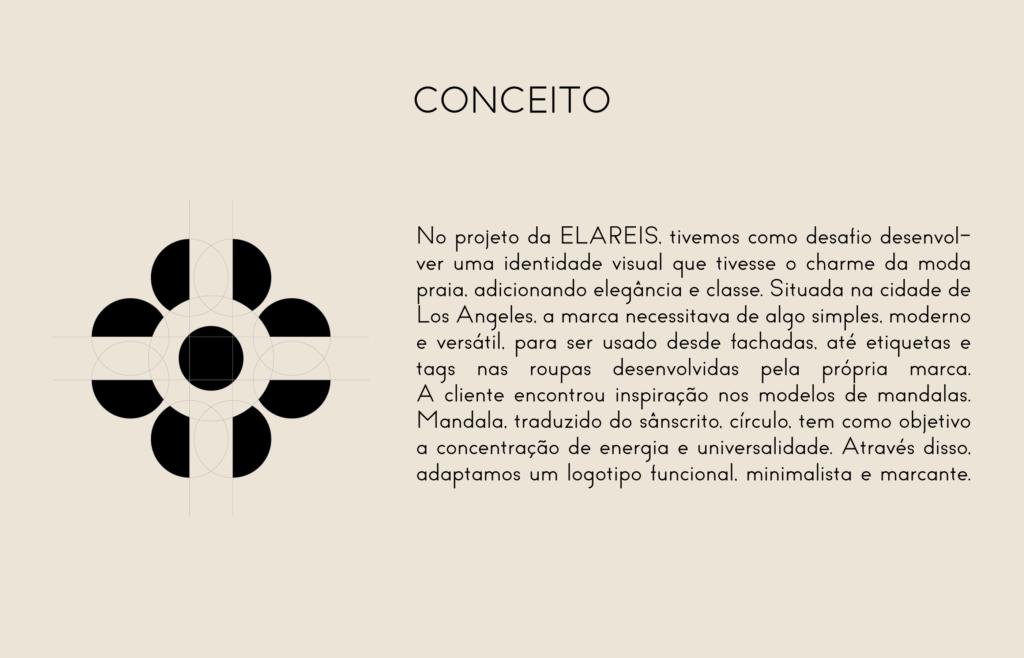 The brand needed something bold, modern, and versatile to bring a touch of Brazilian culture to the city of Los Angeles, where it is based, and be used from storefronts to labels and tags on the clothing developed by the brand itself. The client found inspiration in mandala patterns. Mandala, translated from Sanskrit as “circle,” aims at energy concentration and universality. Based on this, we adapted a functional, minimalist, and striking logo.