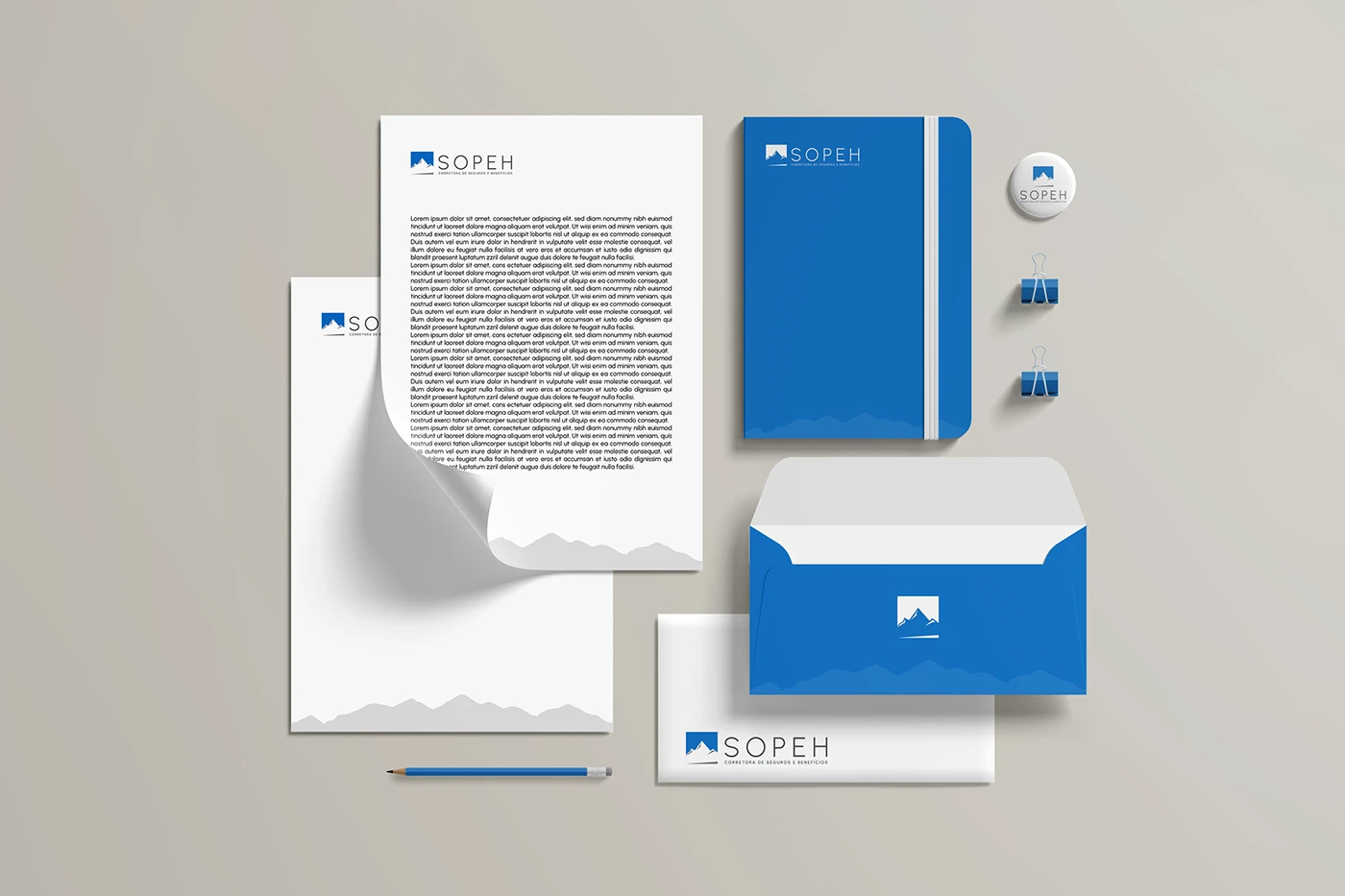 O desafio central deste projeto foi traduzir visualmente um conceito de marca já consolidado. A solução encontrada foi utilizar a imagem de uma montanha para representar a Sopeh, simbolizando a solidez e a imponência conquistadas em seus 13 anos de mercado.