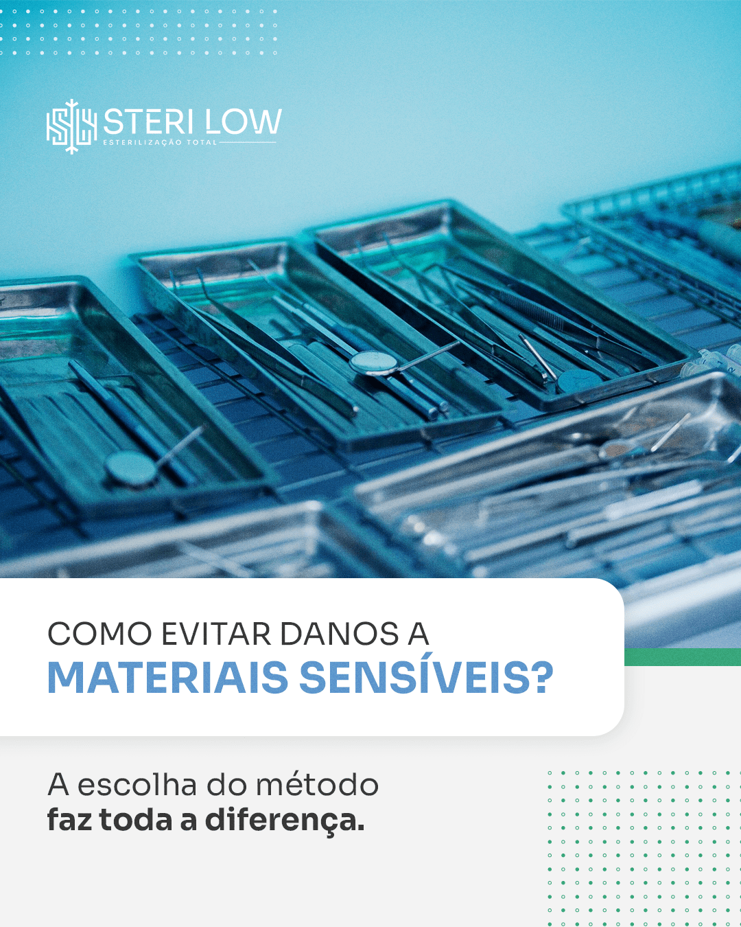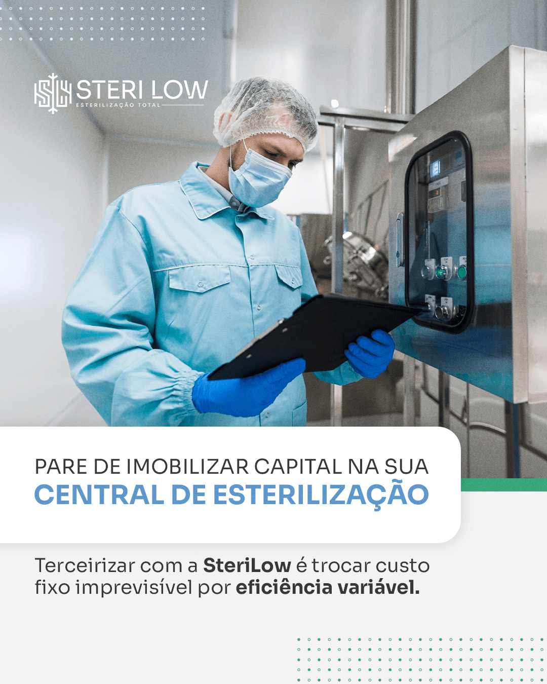 A SteriLow é uma empresa voltada para soluções em esterilização de equipamentos hospitalares. Para fortalecer sua comunicação, desenvolvemos materiais que destacam seus diferenciais técnicos e seu compromisso com qualidade e confiabilidade. A proposta posiciona a SteriLow como uma marca alinhada às exigências do setor, transmitindo credibilidade para profissionais e instituições que buscam processos mais seguros e eficientes.